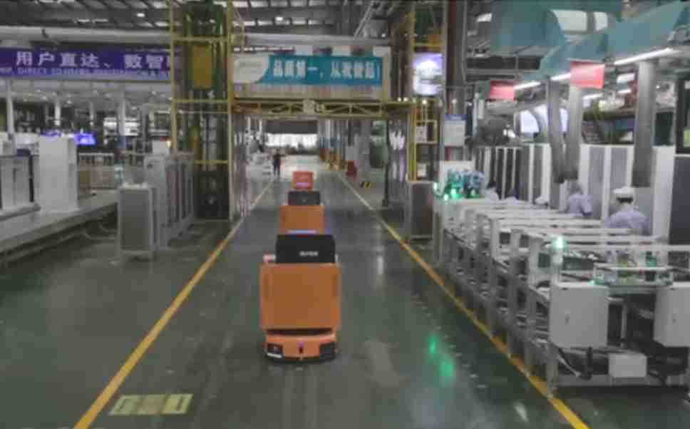 为车载冰箱物流配送打造的智能解决方案,,包含产中物流通过潜伏举升AMR搬运至线边,,产后成品物流智能仓储,,,流程包含产中物流智能齐套入库,,线边安灯叫料AMR智能配送至线边,,,,成品入库、、、、出库,,,,通过无人堆高车机器人,,,智能仓储管理替代人工作业管理,,,实现更高存储、、、、更高效率、、、更具柔性化的解决方案。。。